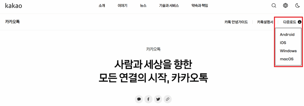 1️⃣ 카카오톡 사이트에 접속하여 설치파일 다운로드를 합니다.