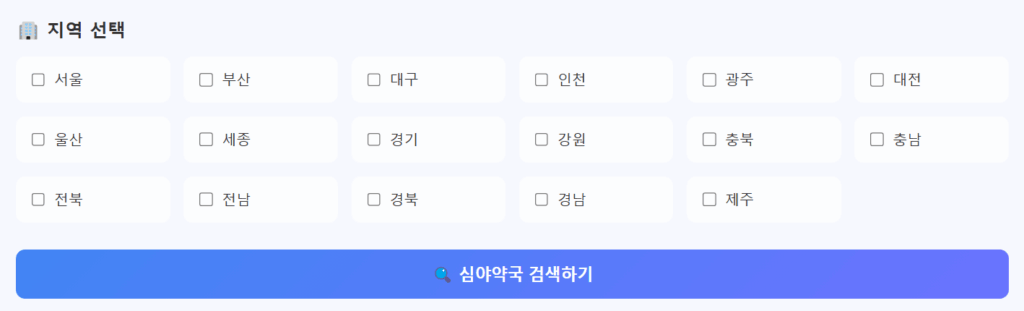 “24시 심야공공약국 사이트” 이용 시 각 지역별로 심야공공약국 검색이 가능합니다. 아래 검색방법을 참고하신 후 아래 링크를 통해 바로 검색해보세요.