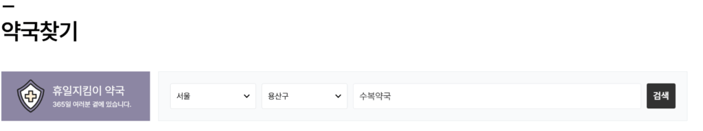 3) 대한약사회 사이트 이동 후 지역과 약국이름을 넣고 검색합니다.